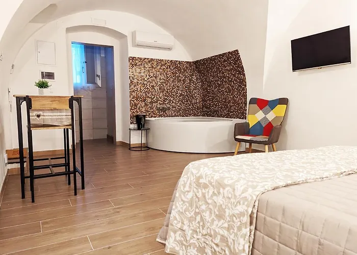 Profitez de la cuisine complète fournie dans cette propriété Appartement Private Jacuzzi et équipée d'une cafétière/théière électrique, d'un réfrigérateur et de la vaisselle pour votre confort. La gare routière Piazza Moro est à une courte distance de la maison.